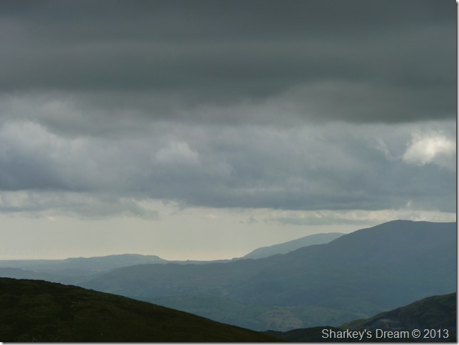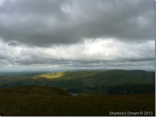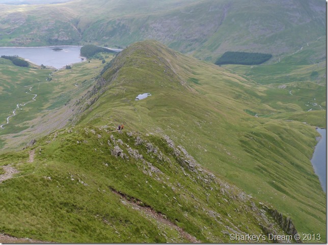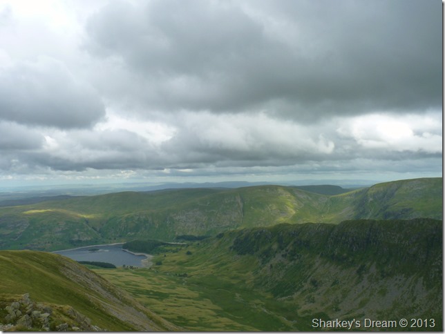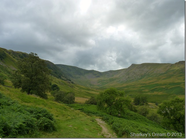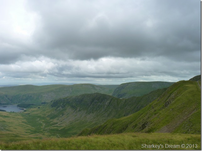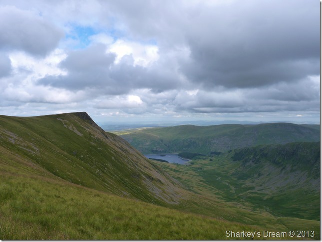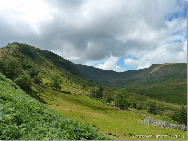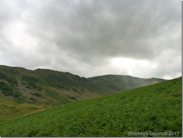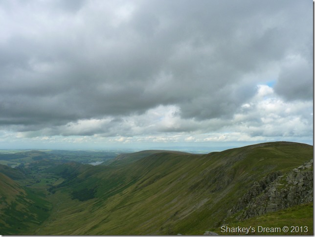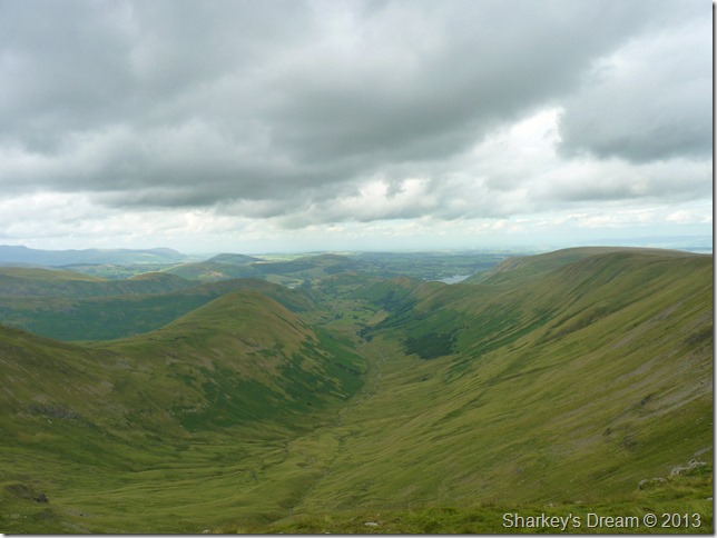 The right flank of Ramps Gill is occupied by Red Crag wile the Steel Knotts ridge winds its way to the end of the valley, it’s a little hazy but the end of the valley is closed off by Hallin Fell, it’s all a little ‘too green’ down there to distinguish what’s what! |