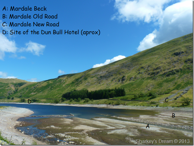 “D” Is the approximate location of the Dun Bull Hotel situated to the left of Mardale Old Road. |