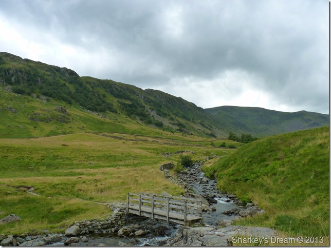 Crossing Riggindale Beck via Bowderthwaite Bridge. |