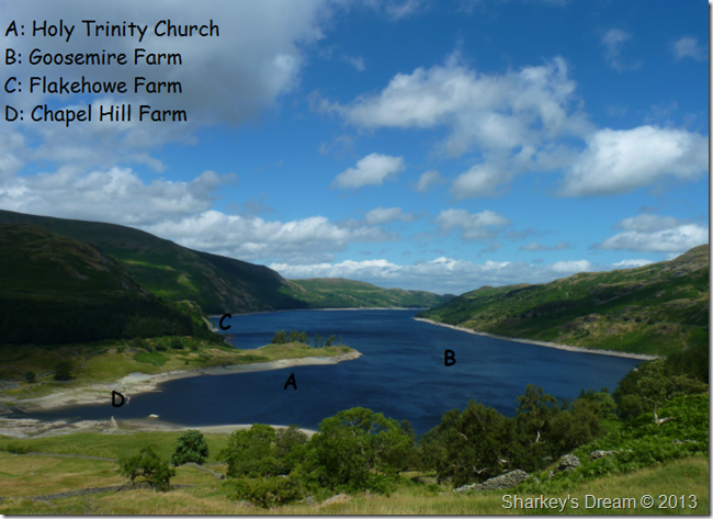 “A” is shown as Mardale Beck which can be seen flowing between two more stone walls as it would then, snake through what was Mardale Green.