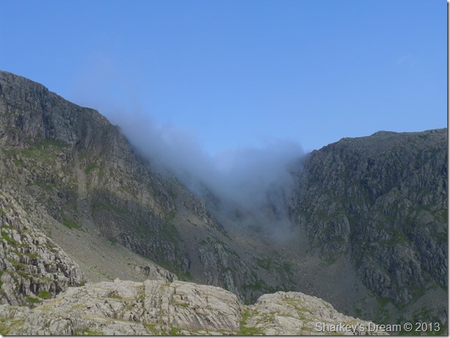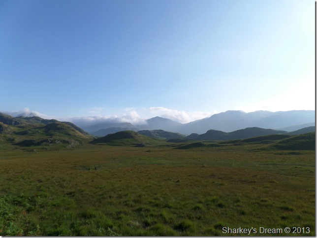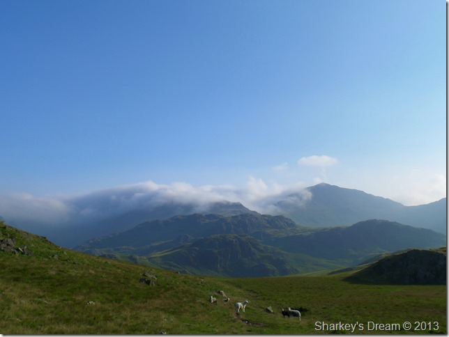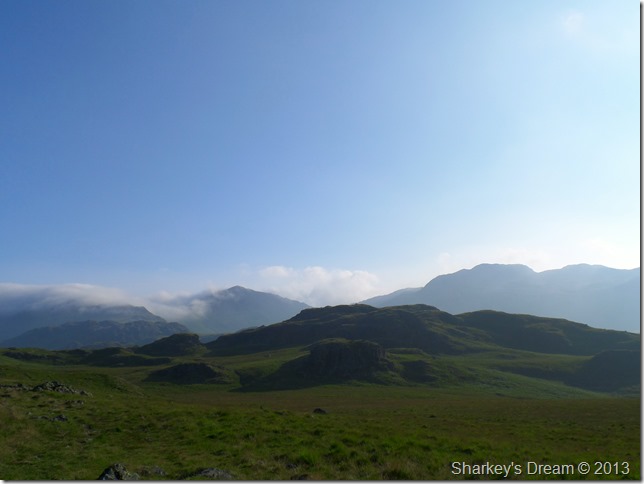 The morning cloud still clung onto the Esk Fells, from here, Esk Hause it seems…does not exist |