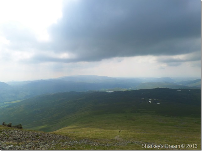 After exiting Lord’s Rake I took in the steep ascent as I flanked Symonds Knott via the rock strewn path, here I was glad of the shade which cooled me down, from here the sun light was broken as the cloud intensed high above. |