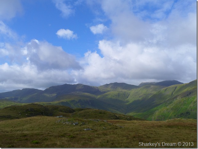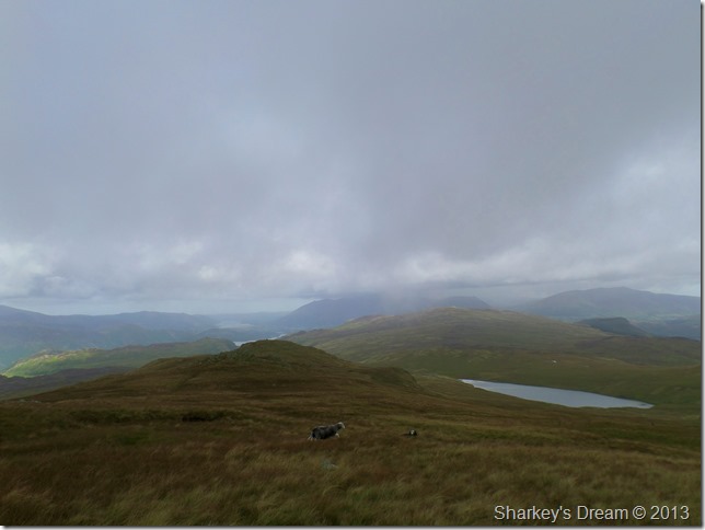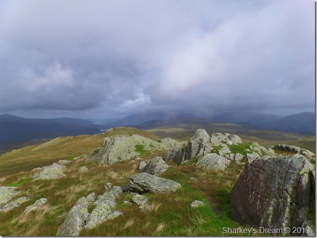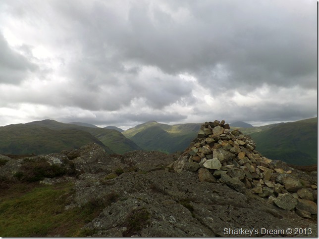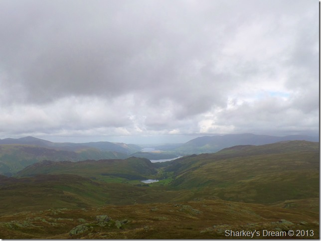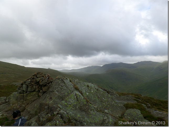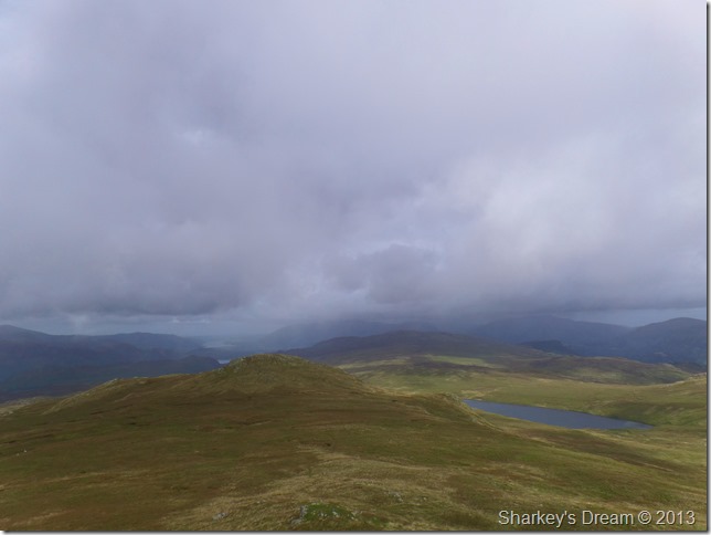 I managed to take this photo before we were hit by more rain, here looking towards Helvellyn, Nethermost Pike, Dollywagon Pike, Grisedale Hause & St Sunday Crag, in the foreground in the right of the picture is Steel Fell & Steel Fell Tarn.