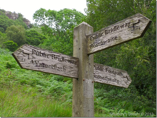 With this we shoulder packs & head for the fields of Stonethwaite & the footbridge that crosses Greenup Gill. |