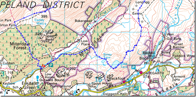 I took on the slight excursion to the head of Miterdale where waterfalls cascade down the flanks of Illgill Head forming the River Mite, a perfect setting for lunch.