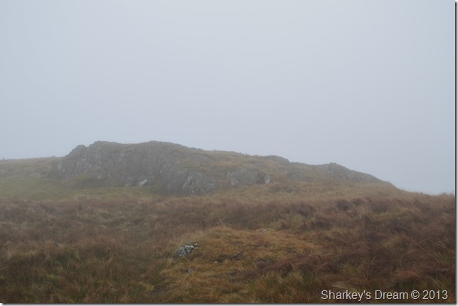 After quite alot of zig-zagging the summit shoulder was reached, in gaining the summit I lost almost all visibility. |