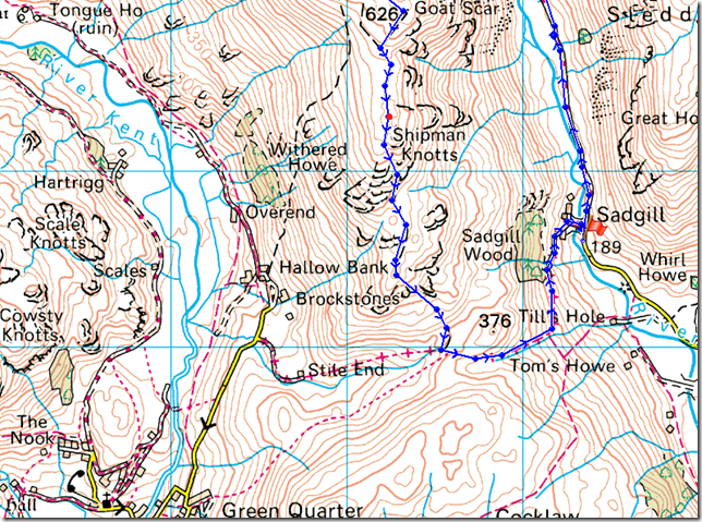 Sadgill, Longsleddale – Harter Fell (Mardale) – Kentmere Pike – Goat Scar – Shipman Knotts – Longsleddale Pass – Sadgill |