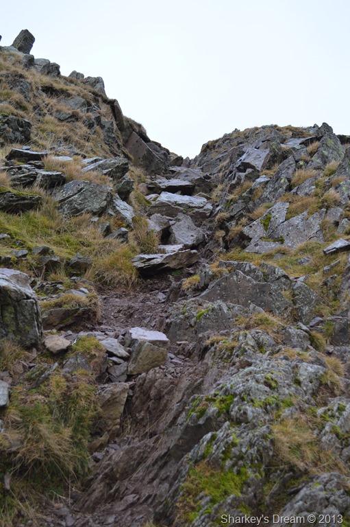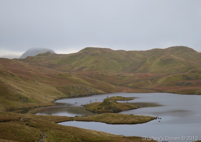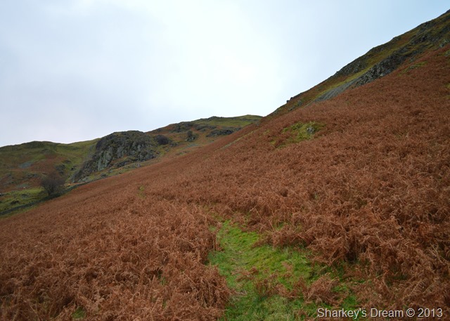 I do this after paying the south top a summit, then instead of making a beeline for Angle Tarn instead I head east by following a faint path almost as if I was making for the top of Heck Crag before turning sharply right where I pick up another faint path that will lead me down to the Tarn, my route was quite a diversion but beat the steep & wet grassy direct route down to the Tarn.