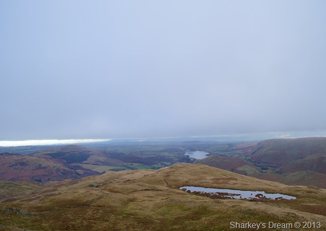 Place Fell Tarn & Hart Crag mark the start of my ridge walk all the way to sleet fell, here the light seemed to be getting lower & lower, the blanketing cloud above obscuring any light from the sun which glowed faintly through the grey cloud. |