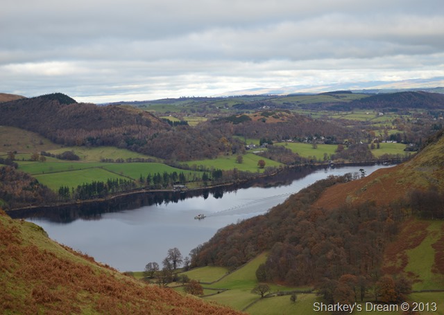 Ullswater Steamer seen over the hamlet of Sandwick. |