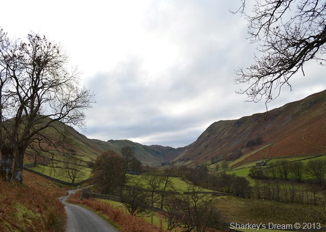 The road winds its way in the valley of Martindale, here I can pick my route via Nickles which can be seen at the Col in between both Winter Crag & Beda Fell, more options are available to gain Winter Crag by taking numerous path picked out a little further into the valley. |