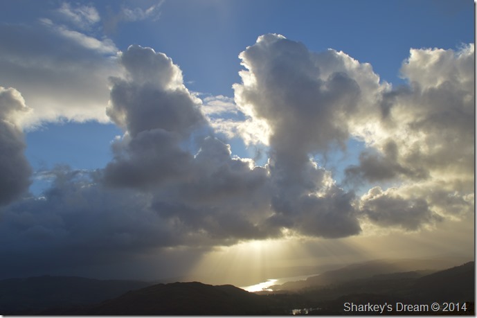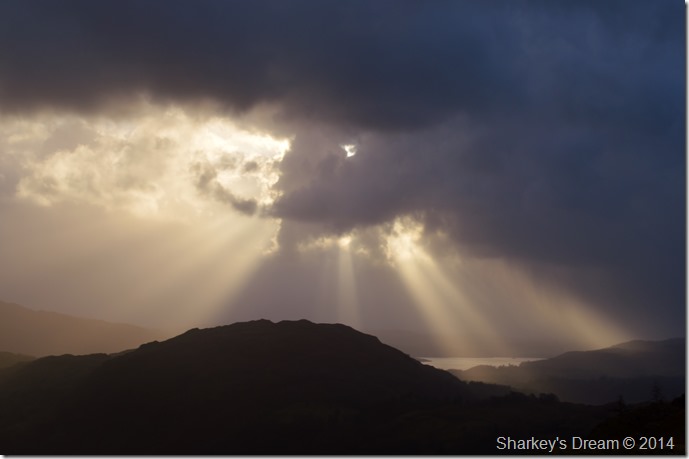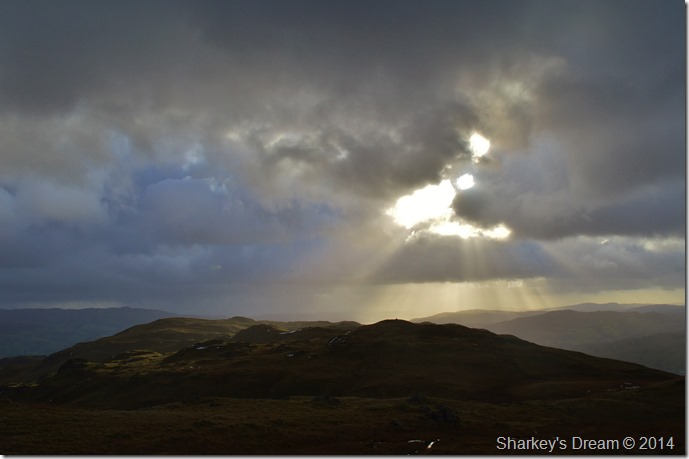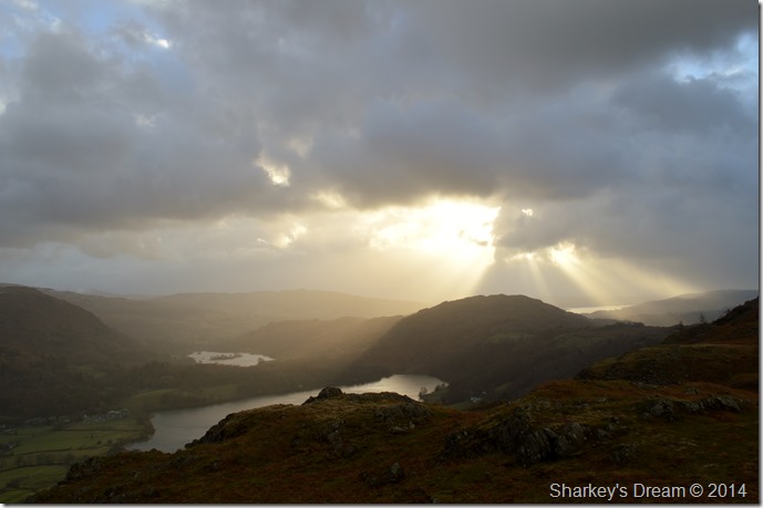 Loughrigg Fell seen with the sporadic light affect creating the Angels Torches. |