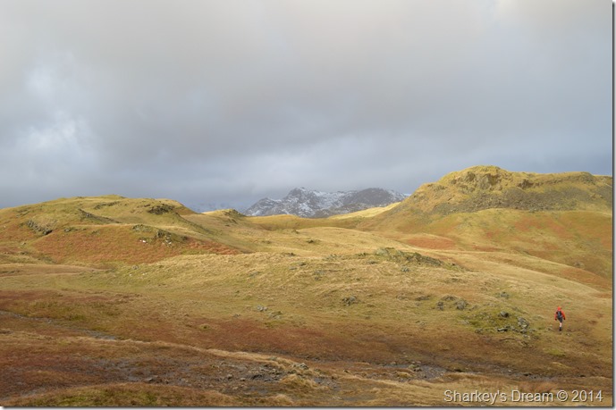 The walk south to see the Langdale Fells was done while battling a fierce & very cold wind, Tim opted for some higher ground as I kept with the ridge moving headlong into the wind.