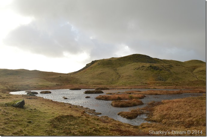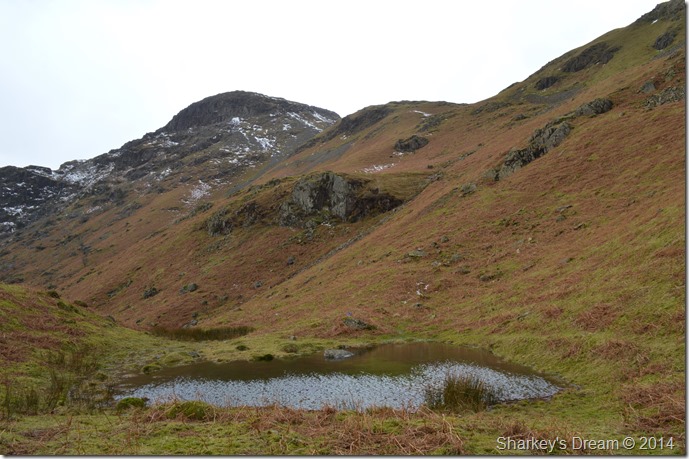 Here looking south (towards Chapel Stile) from one of two of Langhow Tarns, this one being the more eye catching than the larger Tarn found next to it. |
