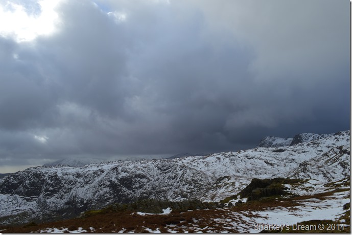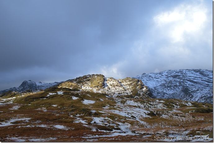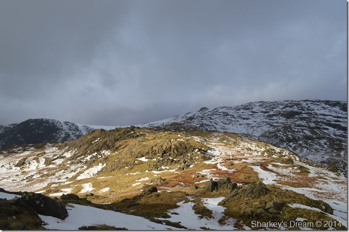 The sporadic light continues creating spectacular contrast between the near & distant fells. Here in this photo Pavey Ark can be seen together with Sergeant Man seen just off centre in the photo.