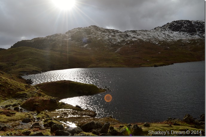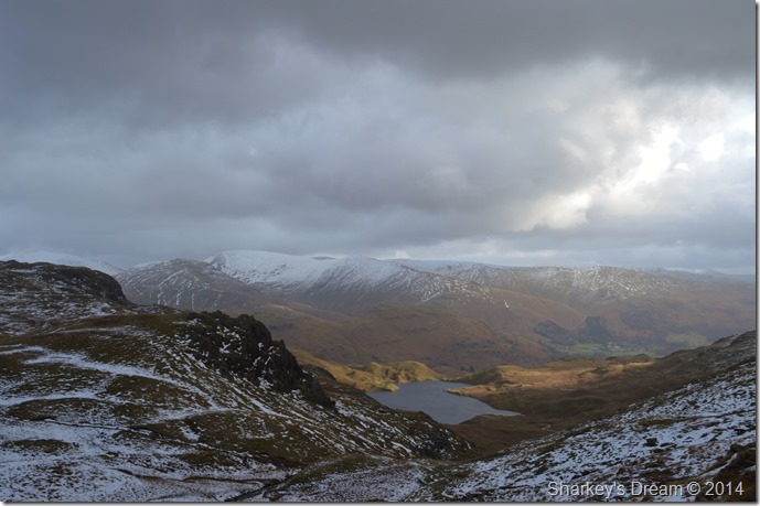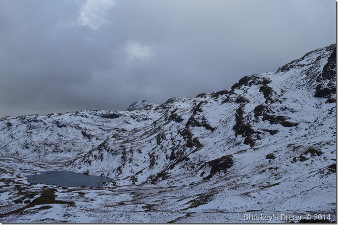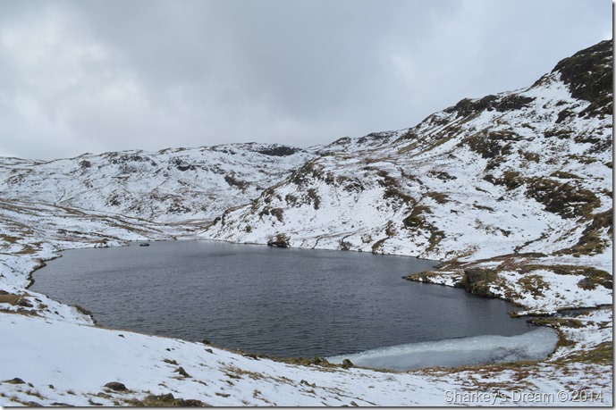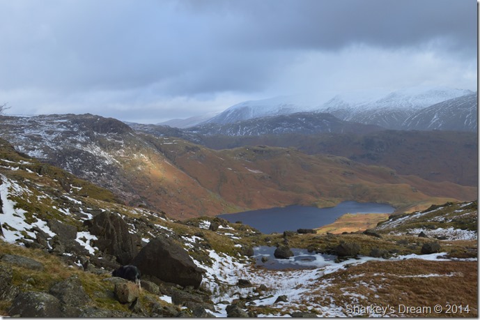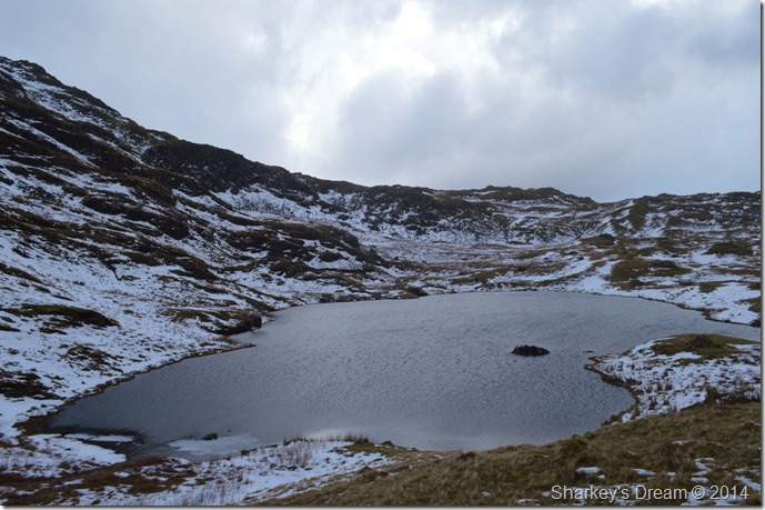 Here looking back on a very cold & wintery Codale Tarn as we make our ascent on Tarn Crag. |