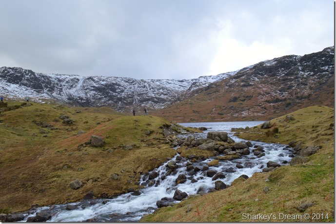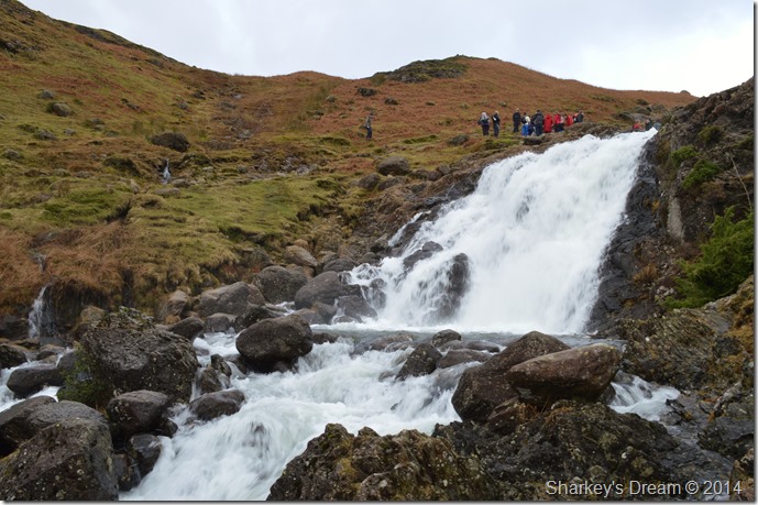 We walked beside Sourmilk Gill for a short while looking to see if there was a safer place to cross but it was soon becoming apparent that even at the narrower parts of the outflow the water was travelling way too fast to make a safe crossing. |