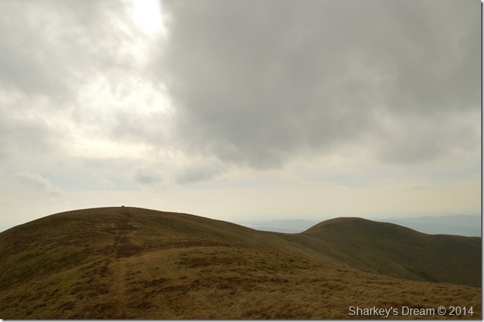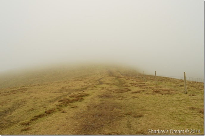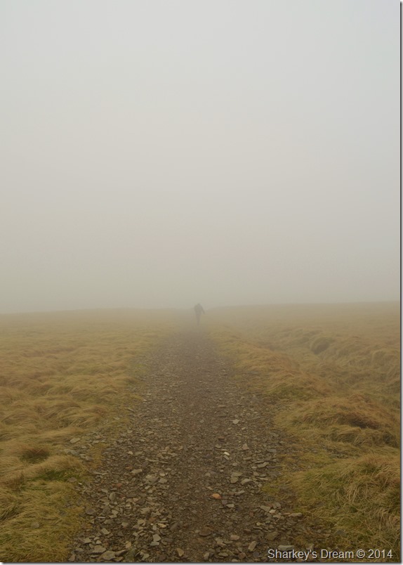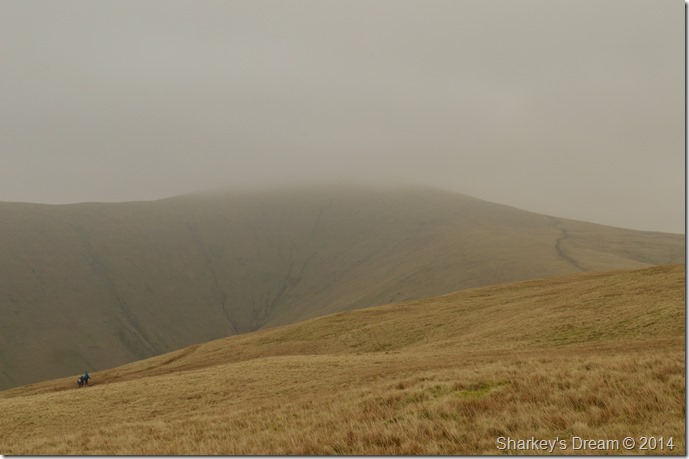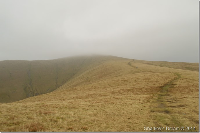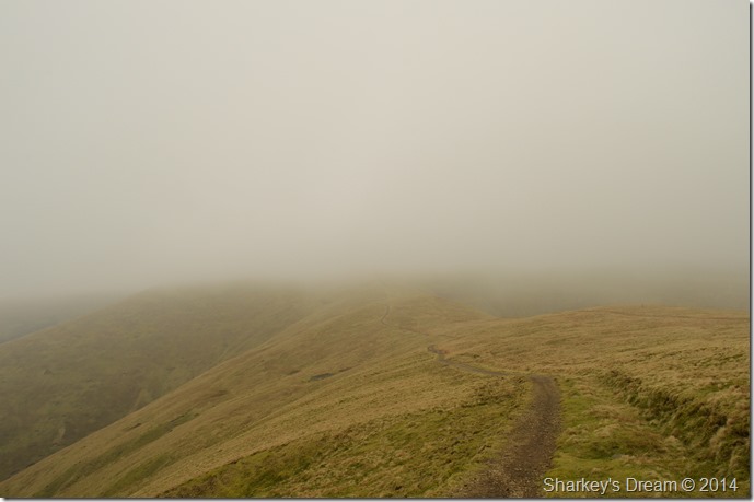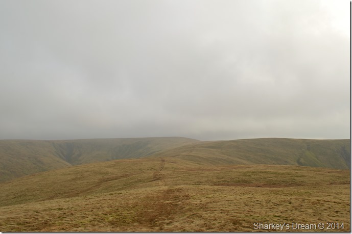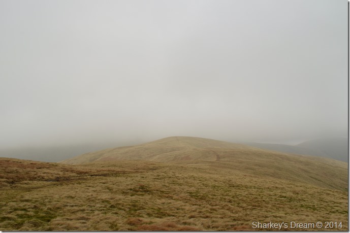 Ahead Calders summit is under a thick coating of cloud which drifts across the ridge sometimes obscuring my whole crossing. |
