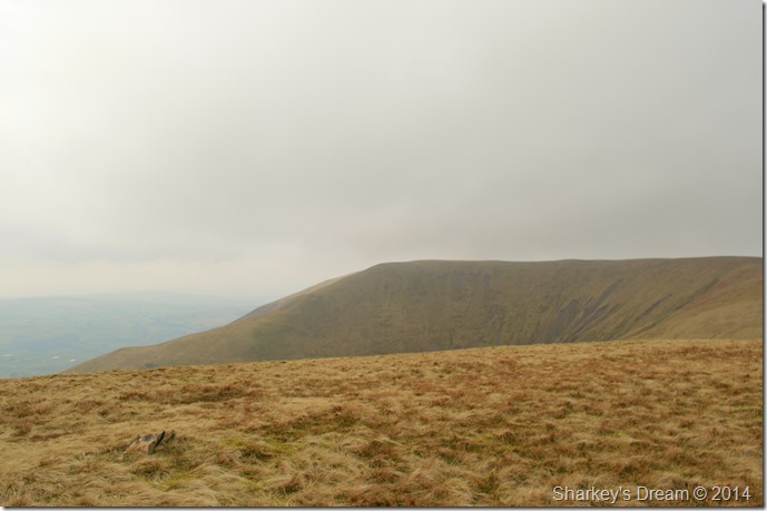 The Calf was reached shortly after a slight pull from the main ridge path, it was here I noticed that the wind had picked up quite notably as my right was starting to do exactly what the wind was telling it to do!