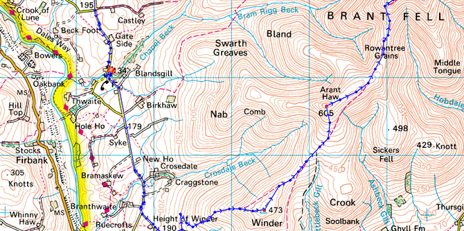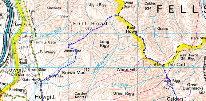 Holy Trinity Church – Howgill Lane – Winder – Arant Haw – Rowantree Grains –Calders – Bram Rigg Top – The Calf – White Fell Head – Bush How – Breaks Head – Fell Head – Beck House – Howgill Lane – Holy Trinity Church |