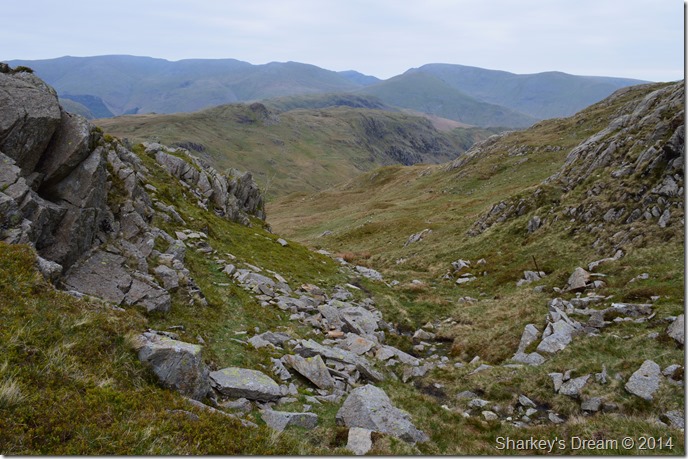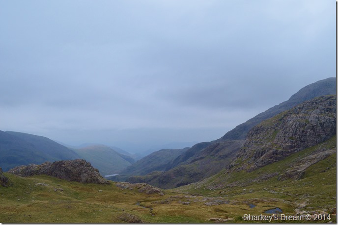 A distant Styhead Tarn seen across the Corridor Route. |