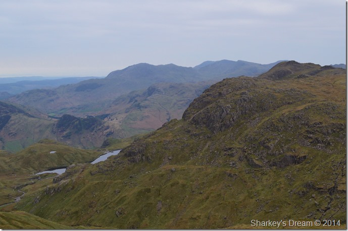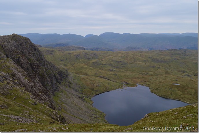 Pavey Ark & Stickle Tarn seen from our Harrison Stickle ascent, beyond, a eastern horizon. |