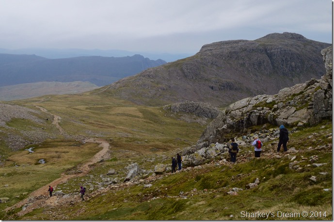 Typically the decent on to Broad Crag Col was rough but spirits were still high as we edged our way down passing more walkers all heading away from the summit.