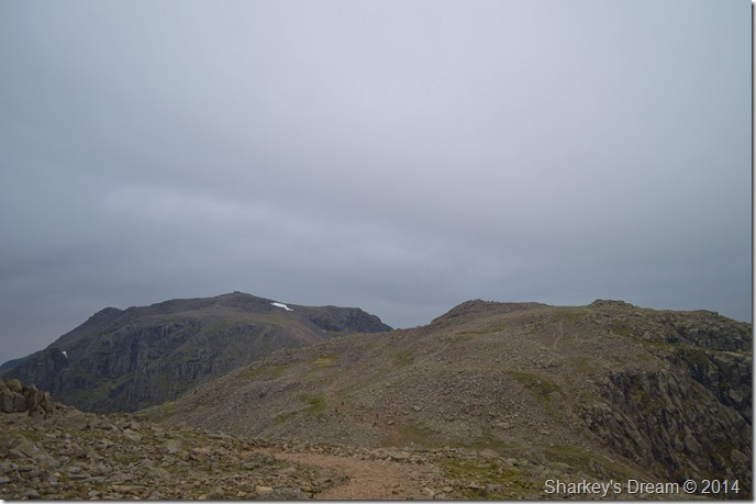 Scafell Pike seen over Broad Crag Col. |