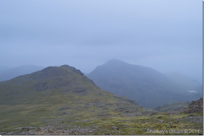 By the time we re-traced our steps over Calf Cove the rain was starting to subside leaving a darkness about the air, it didn’t matter, there was nothing standing in between us & Scafell Pike, well maybe a couple of muscle spasms in my calves which painfully came & went after a ‘good long stretch’