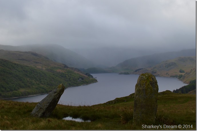 Four Stones Hill lies besides the ancient stone cairn & not much ascent was needed to get these fantastic views over Haweswater towards Mardale Head which sadly looks right now as if more showers are about to pass. |