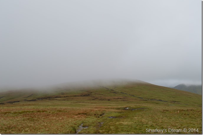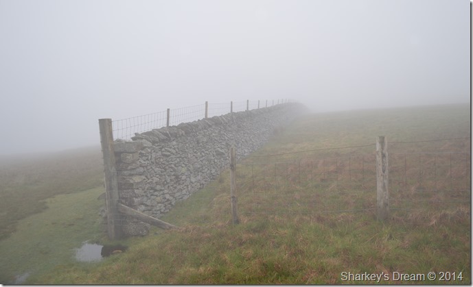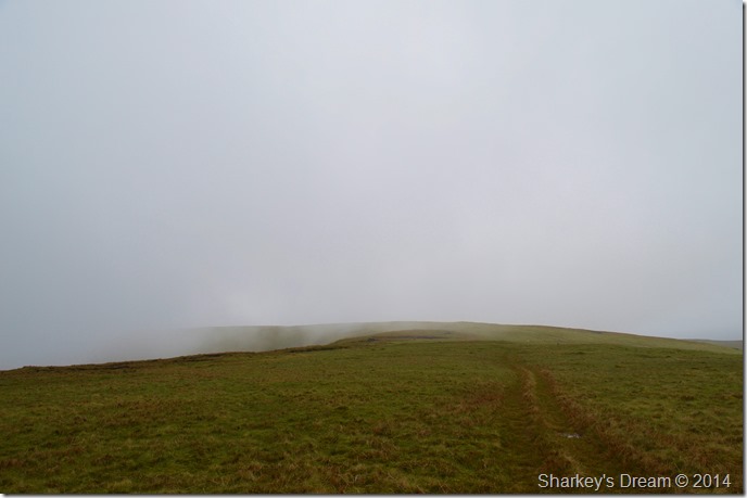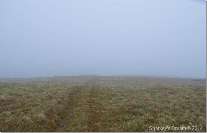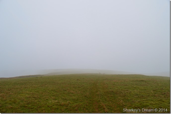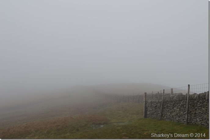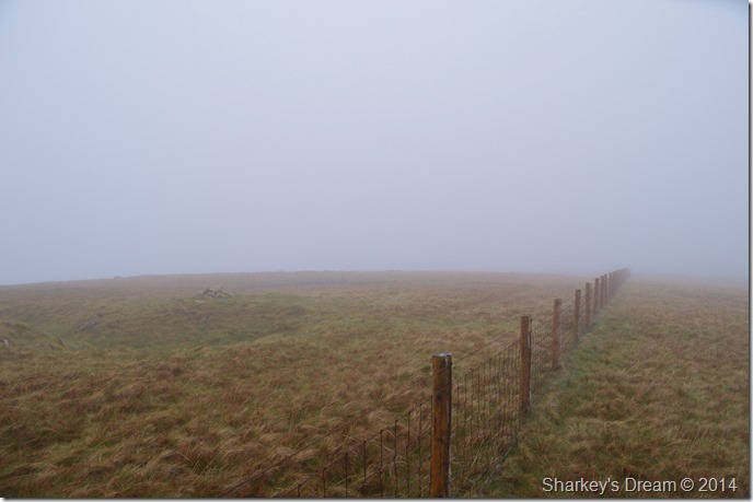 After leaving Wether Hill I took the plunge into the cloud, not before realising that I was on the wrong side of the fence to get a proper view of the summit when I do reach it, on any other occasion I would have corrected this lower down but today I didn’t see much point in summit spotting, more so when the cloud is down. |