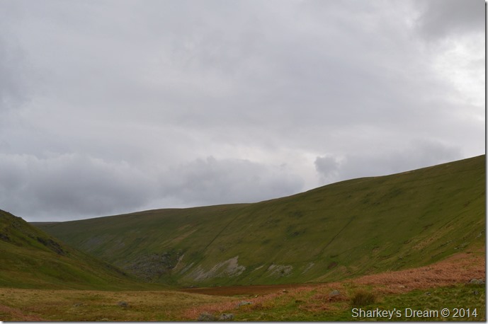 Today my heart told me (with a little help from my legs) to head up the ridge (seen foreground) where I would gain Low Kop via a more gentle grassy approach. |
