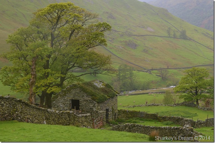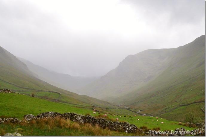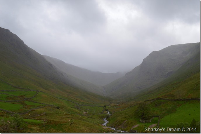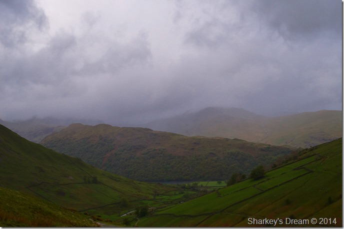 It’s quite difficult to describe what the weather was doing because as we drove over Kirkstone Pass things looked positivity clear, yet here in Hartsop despite a hint of sunshine through the lowering cloud large droplets of rain fell, as if a warning that more was on its way.