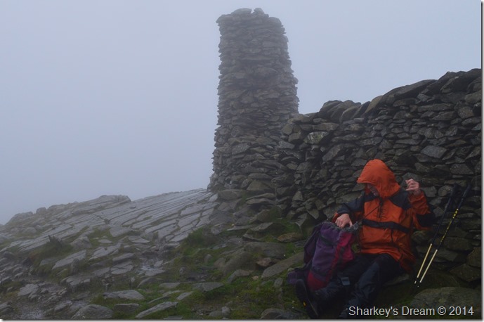 The march from the top of the ridge brought my legs back to life & thankfully they started to feel much better quite quickly. Thornthwaite Crag slowly appeared through the thick intensity of the cloud where we took shelter from the strong winds behind summit wall, here the wind swept the water above our heads while we tucked into our late lunches.