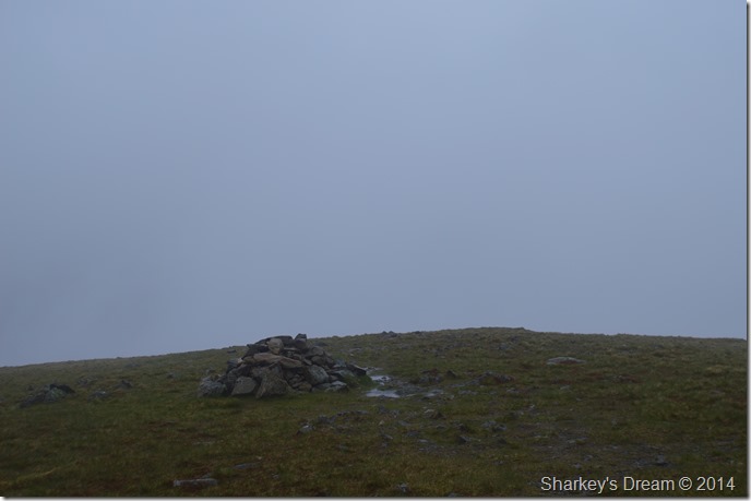 Such the intensity of the ascent at times we stopped for cover behind grassy ridges that form the last part of the ascent, on a number of occasions I felt the call to return down until I heard Ian shout over the wind ‘Id rather be doing this than flagging the back garden – which is exactly what I should be doing right now’! We laughed, we had too, there was no other way to describe that half hours ascent other than horrendous & I at this time would like to thank Ian for the jokes that made it possible. |