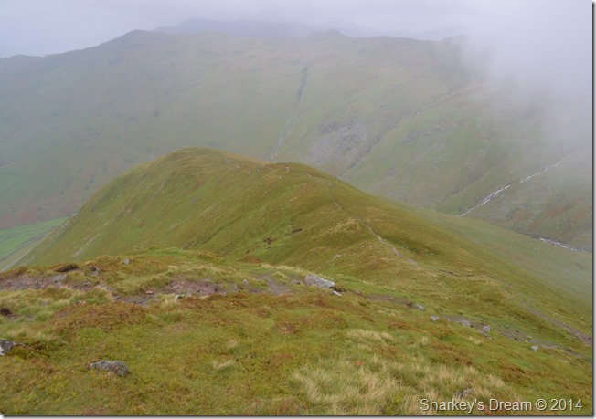 Both Ian & I crossed the ridge whilst being buffered from one side of the ridge to another, this doesn’t stop the conversation which was great for morale even in such a short walk. The outlines of the ridge would appear when one of us would shout ‘look’ by the time the other person looked the view had gone until the next time. Despite the lack of views & the weather the crossing of Gray Crag was a highlight of the whole walk. |
