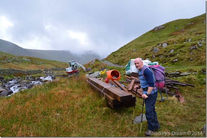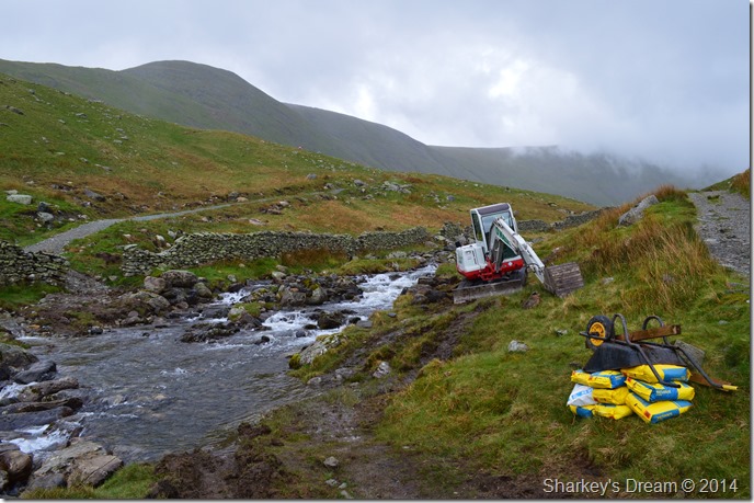 Seen here is a better prospect of the new crossing of Hayeswater Gill, you may notice that this side of the river bank is much more raised than the other side, hence, is that the start of the bridge foundation seen as the pile of rock on the other side? we may be wrong but it’s still a good guess. |