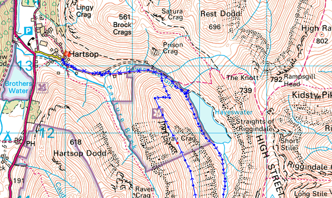 Hartsop – Wath Bridge – Hayeswater – Hayeswater Gill – Thornthwaite Crag – Gray Crag – Hartsop |
