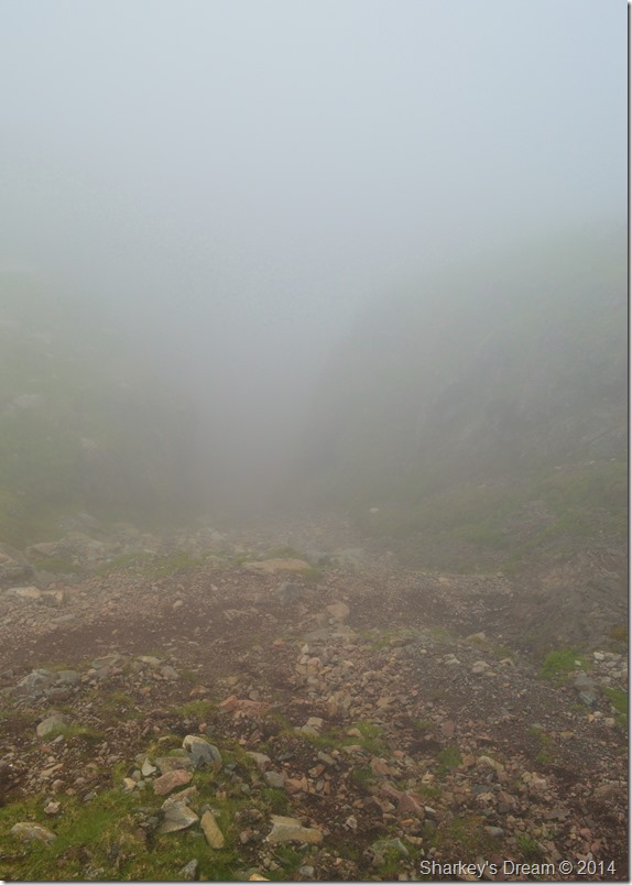 I clambered up the path to take a look back on my achievements only to see nothing but hill fog, but, it didn’t matter I had negotiated Piers Gill & although I hadn’t had the chance to take in all she has to offer I can now say that I will return sometime over the next few months to repeat my efforts hopefully, under better conditions.
