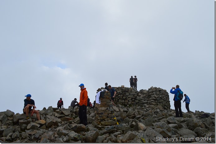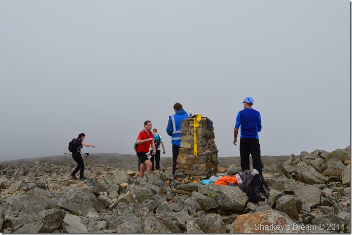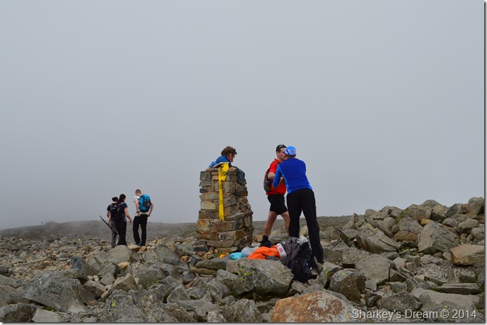 I soon picked up conversation with a Geordie couple (guy in blue jacket) briefly, we commented on how the weather seemed to be turning & our routes & so on. With each runner that now checked in more were behind arriving in groups of two or singular, for a few moments I realised the enormity of actually seeing Tim such the presence of all the runners now arriving at the summit.