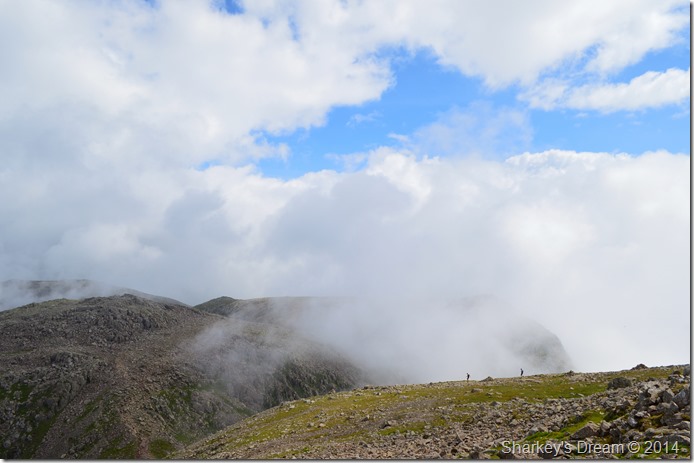 I soon reached the summit of Sca Fell where for one moment I had the summit all to myself, behind me, a man & his wife together with their dog are approaching. I start to undo the laces on my right boot as It feels like I’ve still got half of the West Wall Traverse in there, I empty my boots accordingly making sure every last stone drops out.