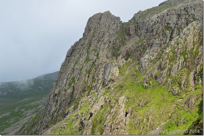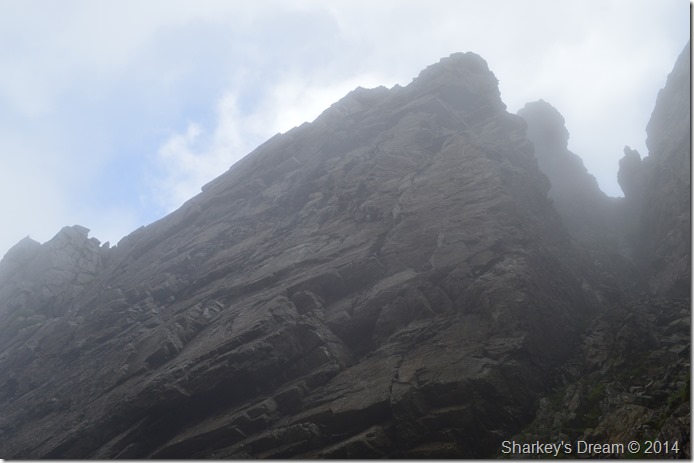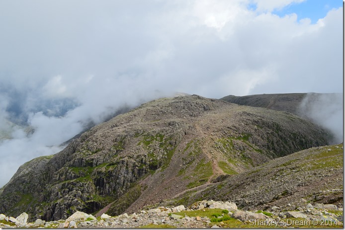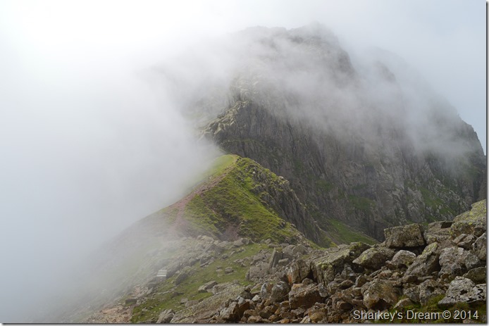 I pick my way over the large boulders before reaching Mickledore, briefly a break in the clouds reveals Mickledore then Broad Stand, memories of which wont be forgotten very easily. |
