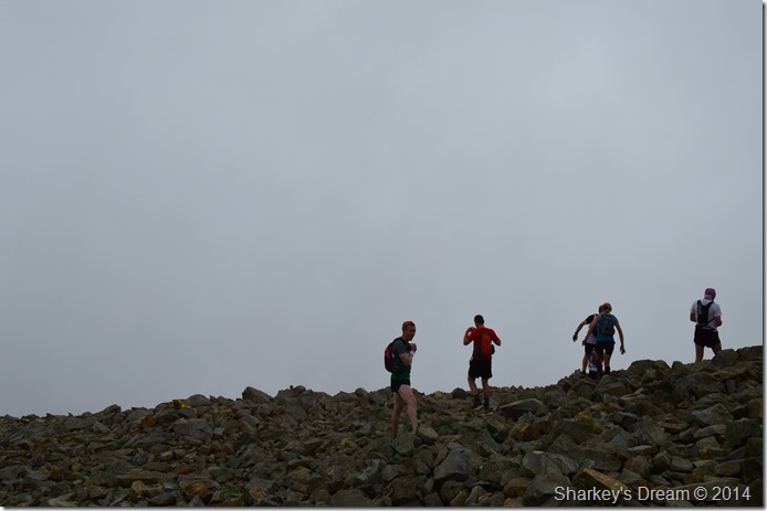From Broad Crag Col I felt redeemed, my legs felt fresh as I took in the last ascent onto Scafell Pike all in my stride, once the summit shoulder was crested I was met by a few more fell runners some of whom where running in just their shorts such the heat & humidity, I was almost compelled to give these men & woman a patronising pat on the back but I knew that just wouldn’t bode, instead they got the all-right, morning or how do, inside I could only look on with a bit of admiralty I guess. |