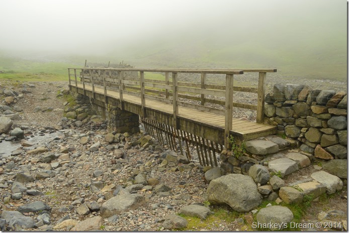 After passing through Burnthwaite Farm myself I soon crossed a very dry looking Gable Beck. I soon realised that here my path takes in a little ascent & with this the fog seemed to be getting thicker as views back into Wasdale Head seemed more patchy. |