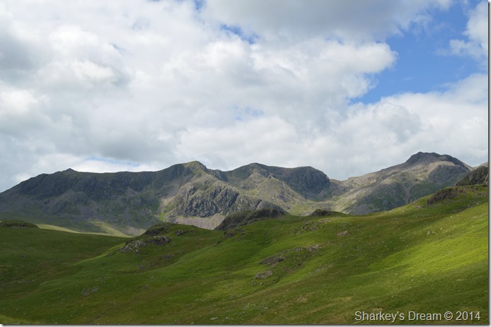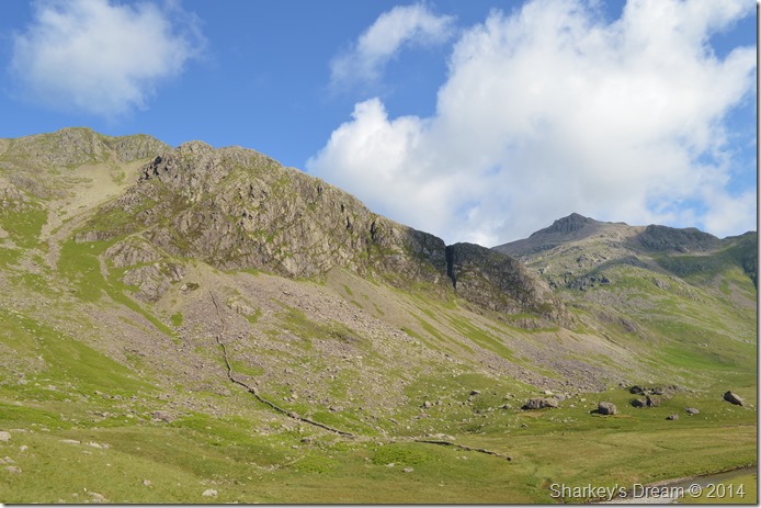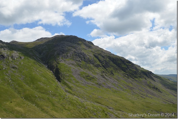 Slight Side, Scafell, & Scafell Pike seen as we flank Hard Knott to our left. |