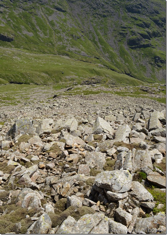 We soon made our way down to the top of Calf Cove passing more & more groups of walkers along the way, by the looks of things Scafell Pike will be one busy summit today, we both agreed that given the fact that today is the Summer Solstice, walkers would still be here at 9pm this evening making the best out of the years longest day. |
