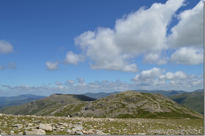 By the time we reached the summit cairn the adrenalin had started to subside a little so we decided it was a great time to eat lunch, without a breath of wind & as the sun beat down we sat there upon the summit people watching as they made their way to Scafell Pike.