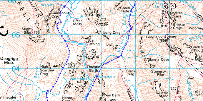 While I was at work Tim did some homework on Ill Crag on its possible ascents, most of which as already mentioned were highly graded Scrambles, all except one, a direct ascent via Cockly Pike.