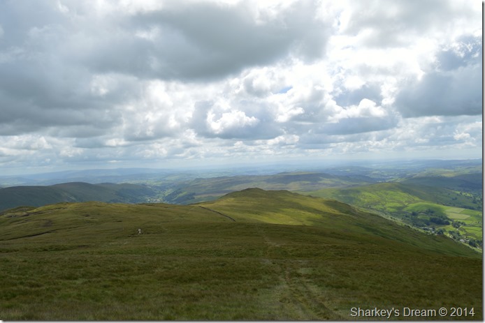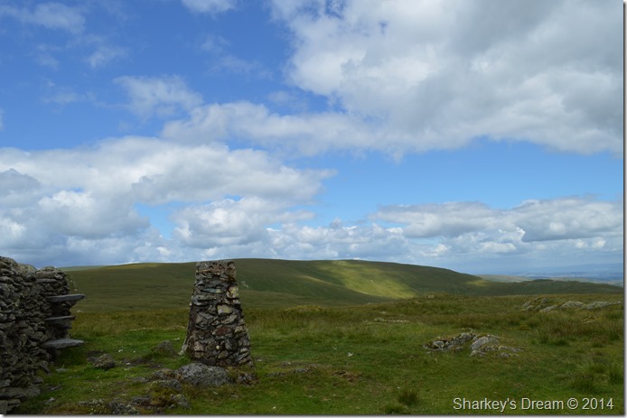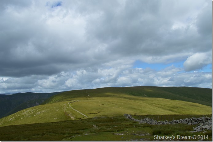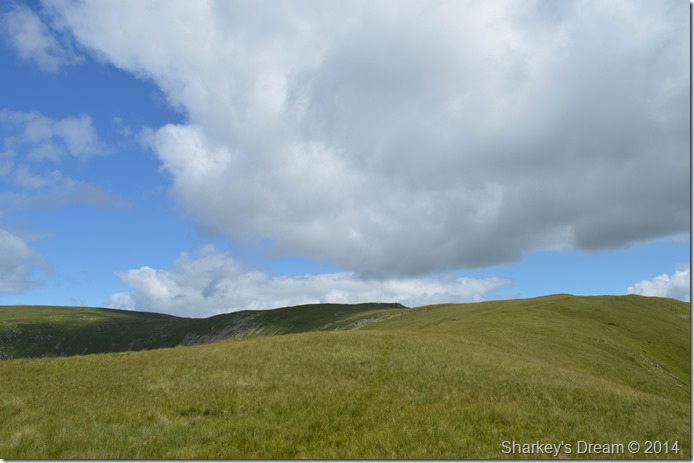 A joke was shared whilst we both got our breaths back before jointly arriving over the shoulder of the fell to be greeted by a smooth grassy ridge whose grasses where illuminated by a bright sun overhead.