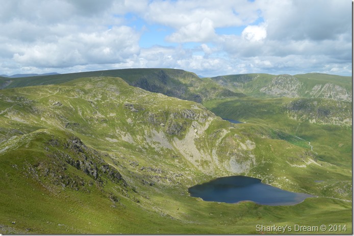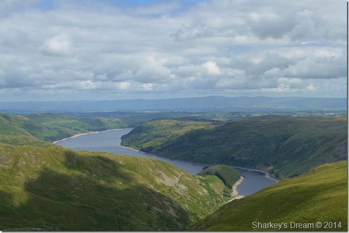 Mardale Ill Bell’s east ridge seen with High Street & a distant Kidsty Pike (far right) from our ascent on Harter Fell (Mardale) with Small Water below. |